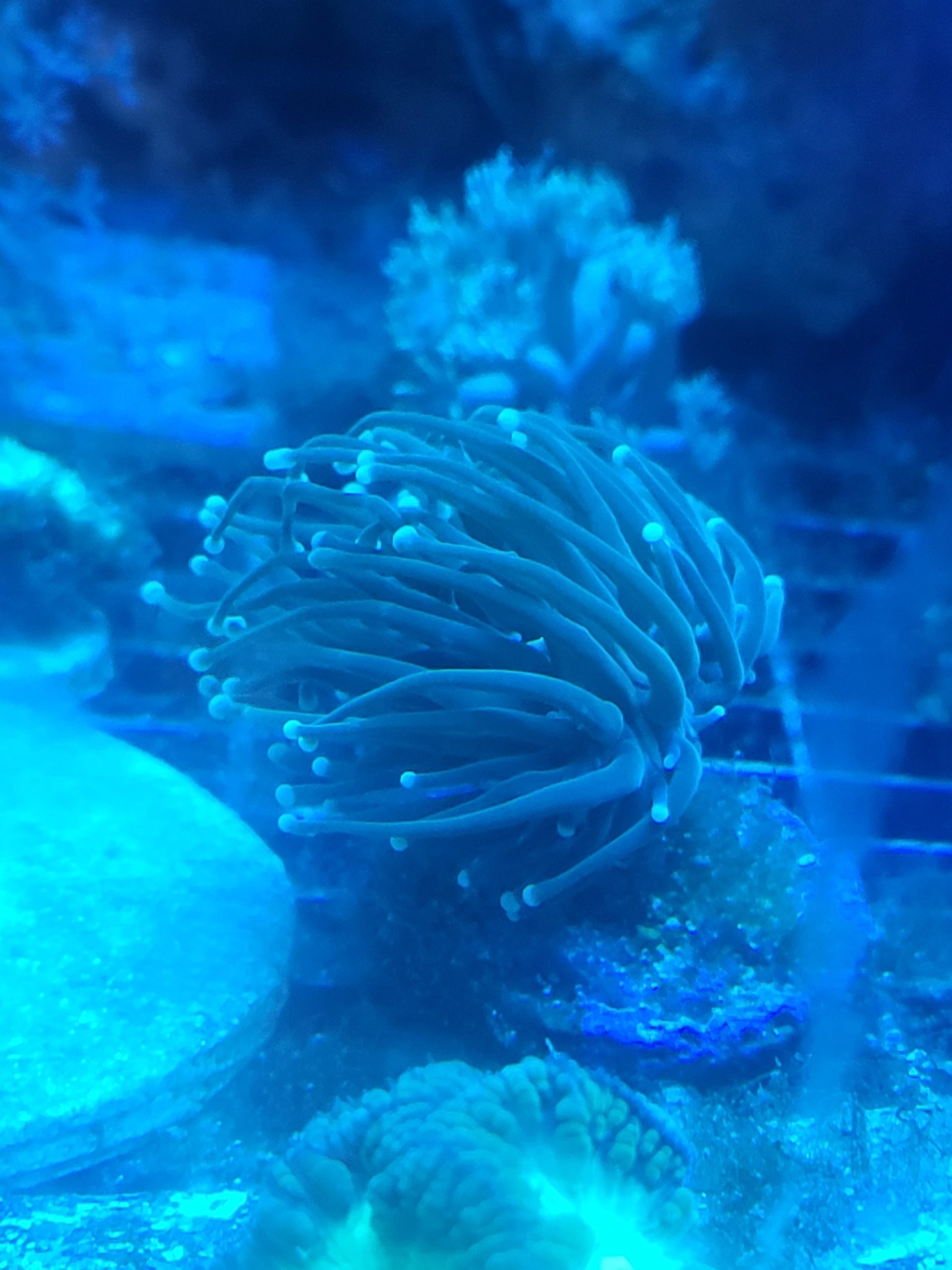 Description – Distributed across the indo-Pacific, Japan, east china sea and southeast Asia. These stunning corals provide a reef with a variety of coloured tentacles in different shapes and structures. The two structures are wall formations (where the structure expands to longer formations until the separate) and branching structures, where the heads bud off previous heads. There are four forms of Euphyllia traded across the aquarium industry: torches, frogspawn coral, hammer and ancora, all of which come in various structures as previously described. Due to their wonderful tentacle structures that vary species to species, these corals provide reefs much needed flow and movement which truly cannot be beaten by any other corals.